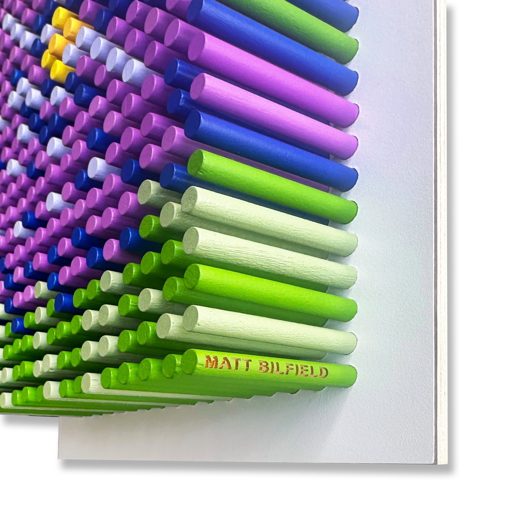 My creative journey is guided by a deep appreciation for order, precision, and the beauty of minimalism. Each of my pieces is meticulously crafted from thousands of painted wooden dowels, inserted into digitally designed boards with machine-drilled precision. This fusion of digital technology and handcrafted artistry ensures both structural complexity and expressive depth.