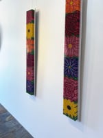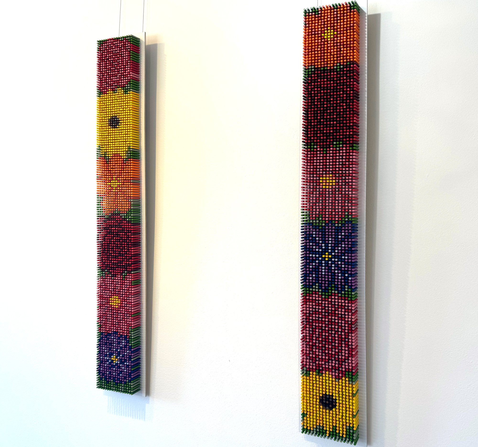 Each dowel acts as a droplet of paint, where every decision in placement and color contributes to the overall effect. Together, these individual elements coalesce into a harmonious composition, creating a vibrant and tactile experience that evolves with the viewer's perspective. By extending the boundaries of the art to encompass the dimensions of the room itself, I invite viewers to engage with my art dynamically and personally, revealing new facets of color, shape, and emotion from every angle in a shared visual narrative.