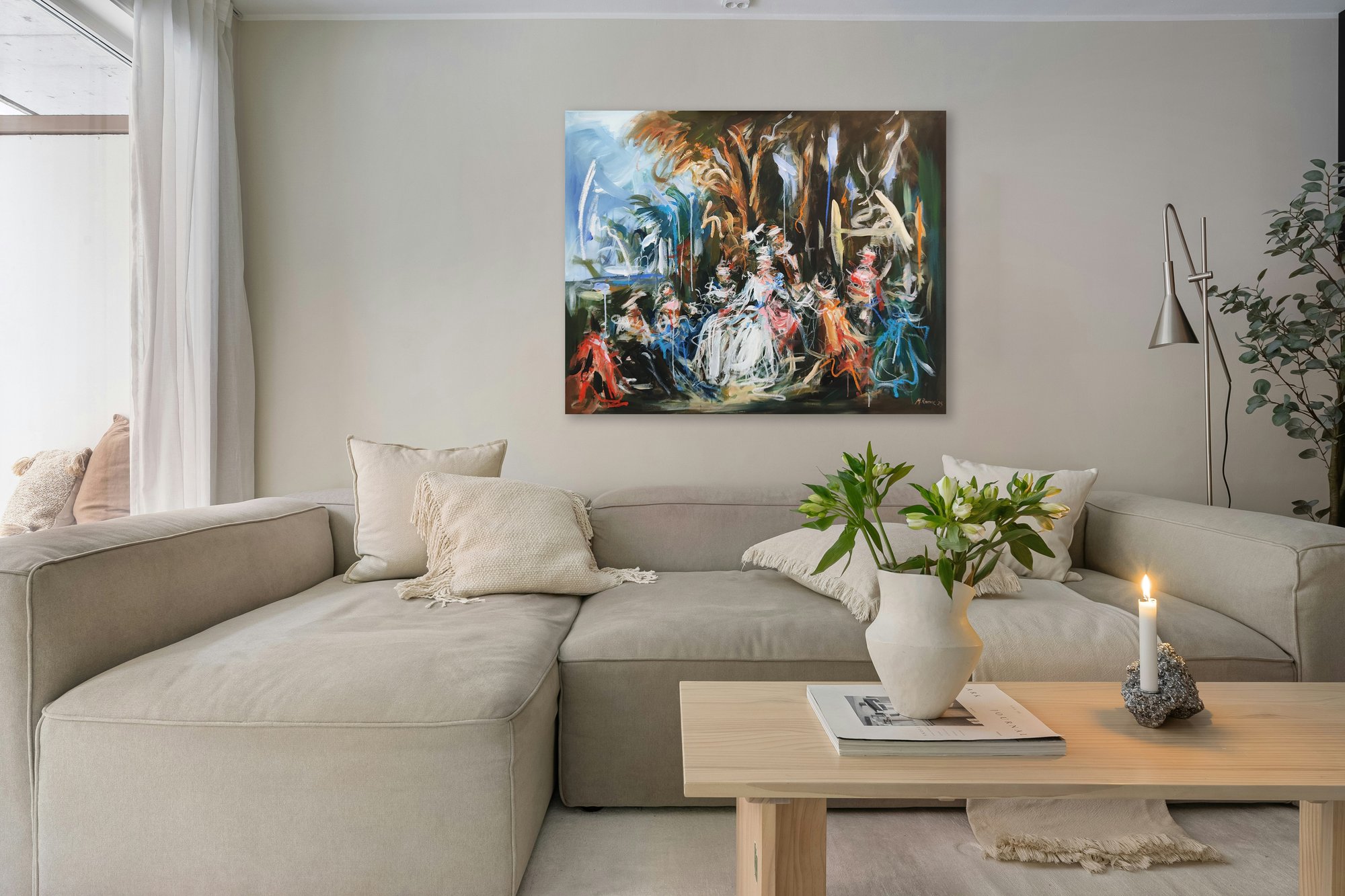 Mandy works mainly with acrylic paint, charcoal & pastel, constantly experimenting with textures & layers to convey dynamic flow & movement. Painting in a very expressive way, abstract elements are explored in her figurative/abstract subjects and the spaces in between.