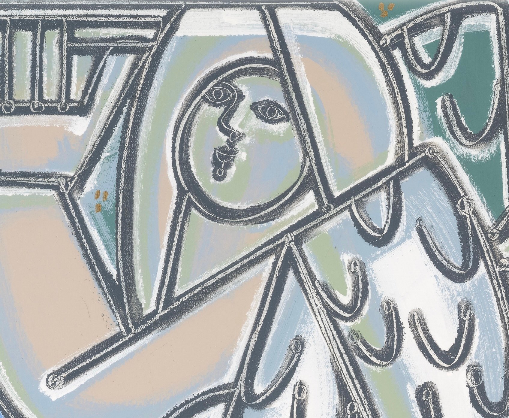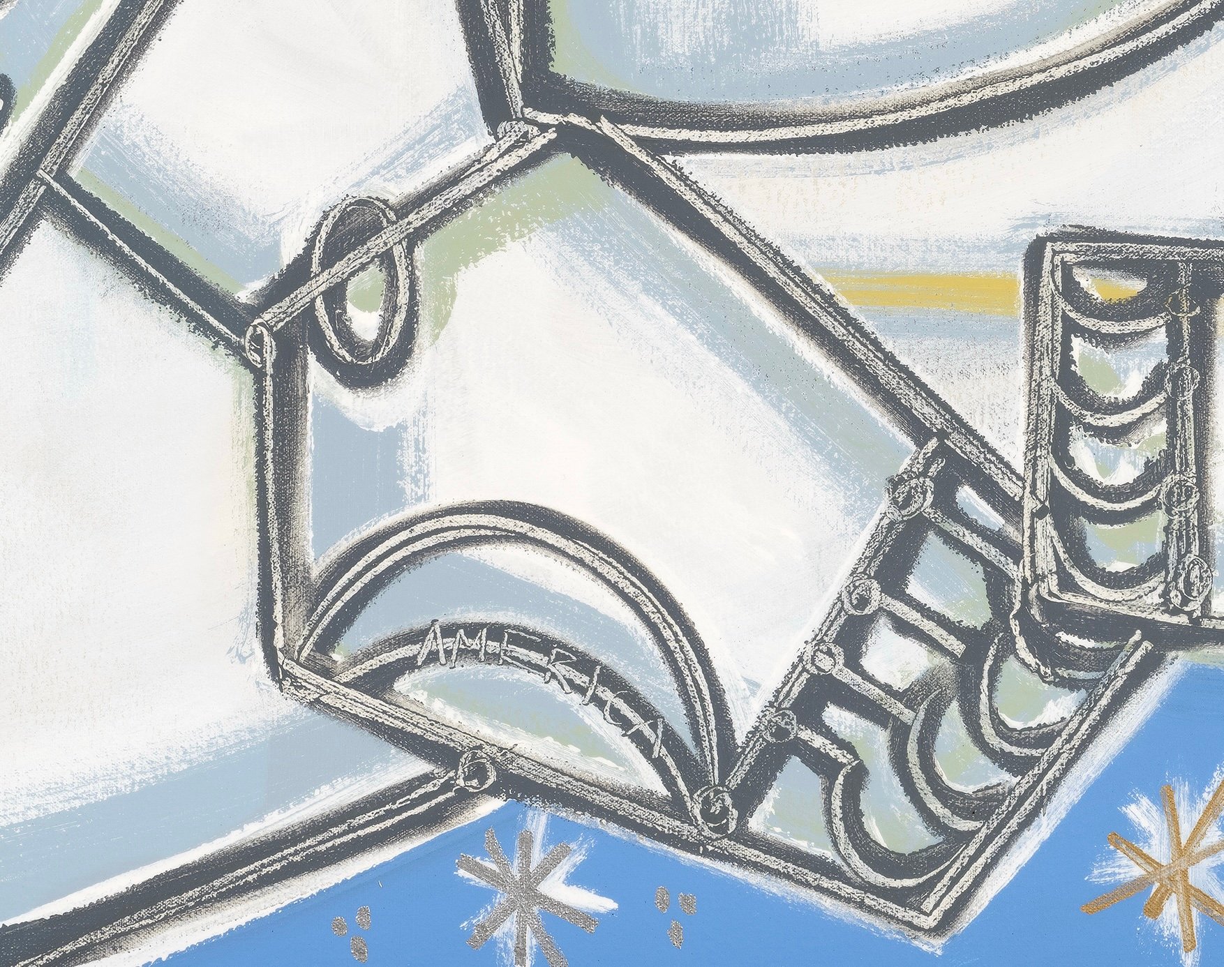Experimenting with line weight and function as a tool for two dimensional representation of three dimensional forms, Martin takes on a new balance between solidity, weight and suggestion. Laden with nuance, the thick lines are filled with the bubbling energy of thin, long scrapes throughout their length - adding both intensity and dimension.
