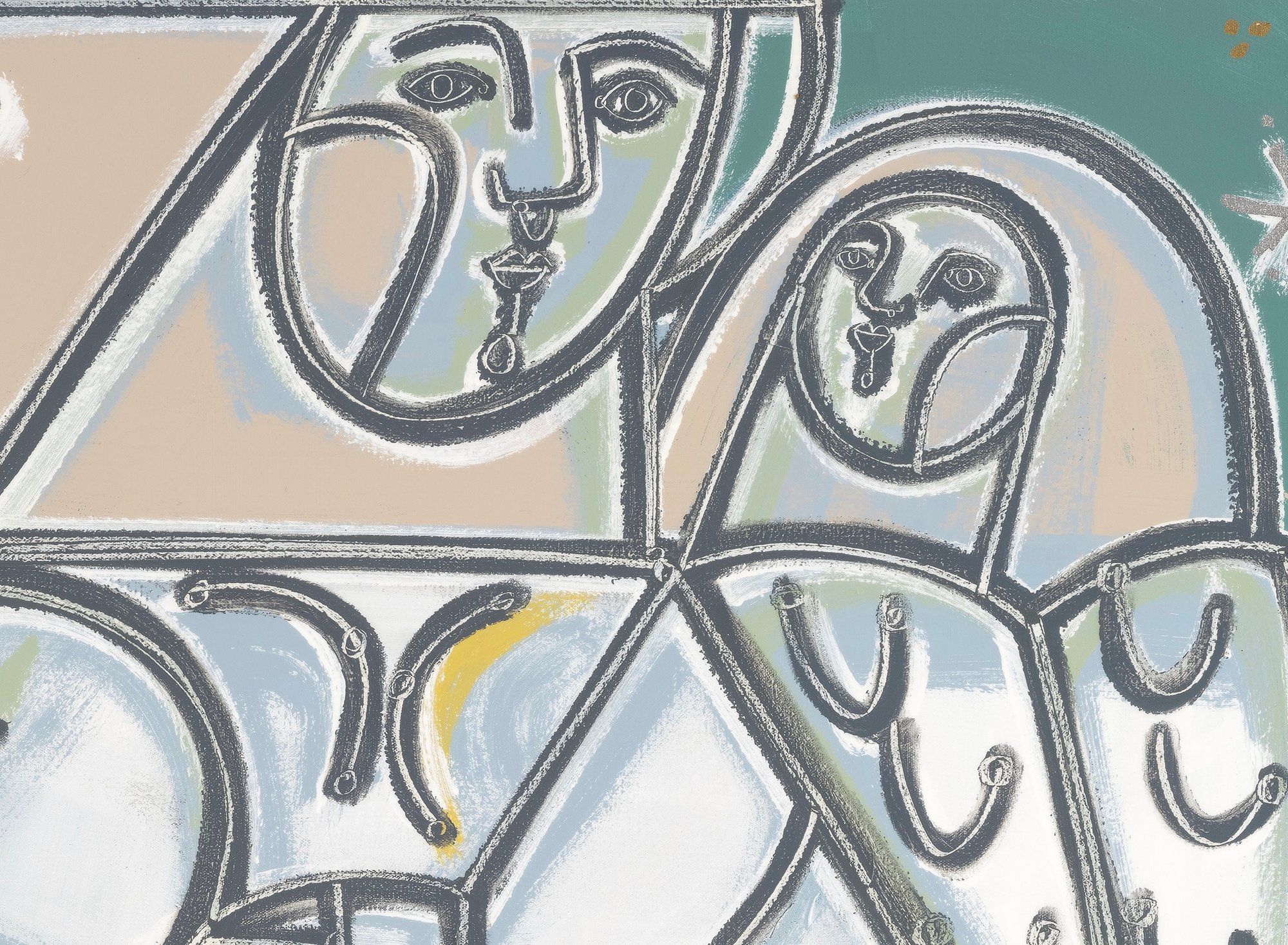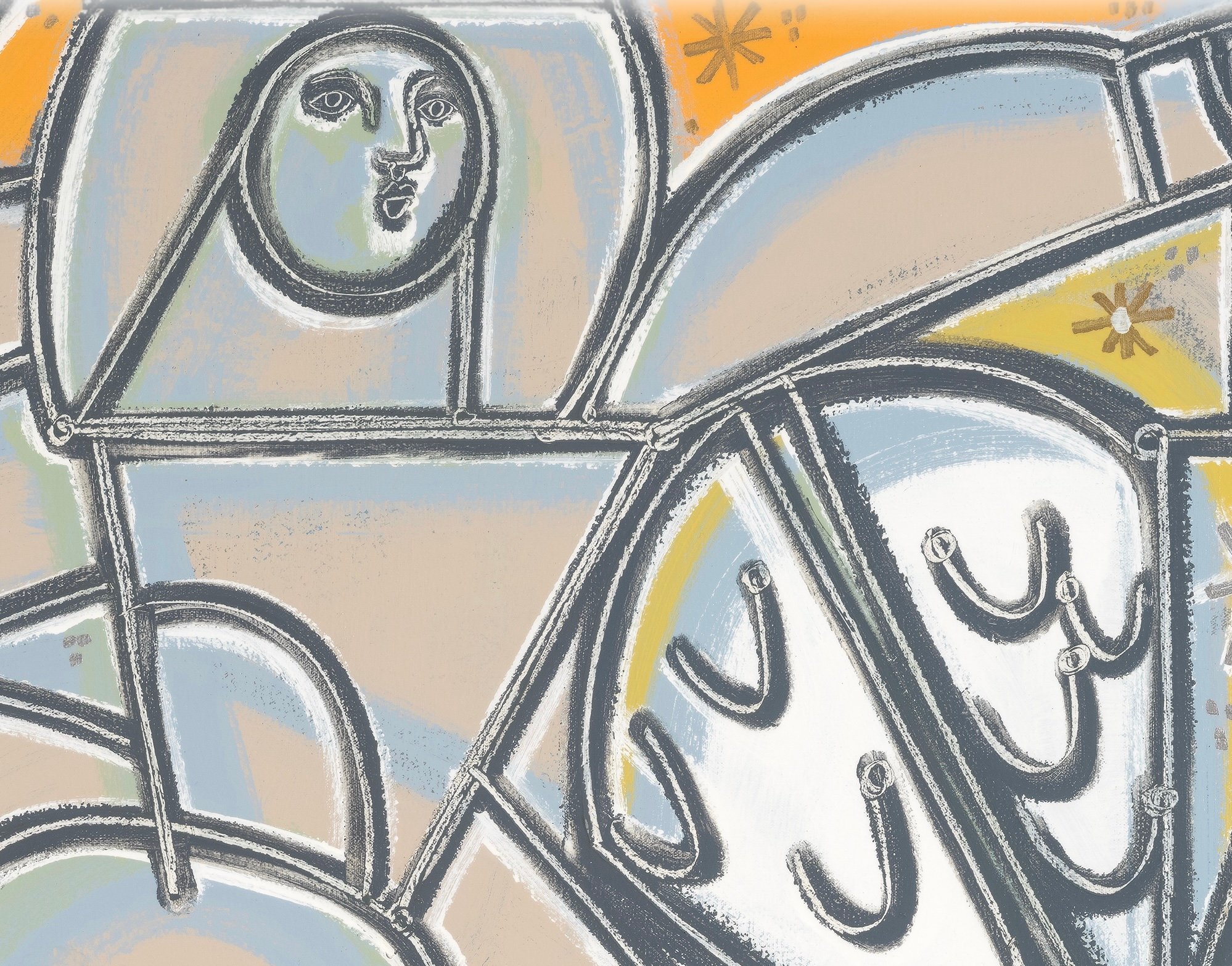 Focused on the human figure and the tales that emerge through the framework of shape, contour, and formal approach, Martin choreographs her forms in relentless flux. Her technique of freehandedly capturing her subjects yields unapologetic marks and a spirited palette that hums with the vitality and vigor of the world she creates. In addition to the figure, many of Martin’s works are populated with anthropomorphic elements such as birds, butterflies and flowers. For Martin, these elements provide both a contextual source of information, as well as symbolic significance, progressing the storyline as a representation of personality, mood, and character.