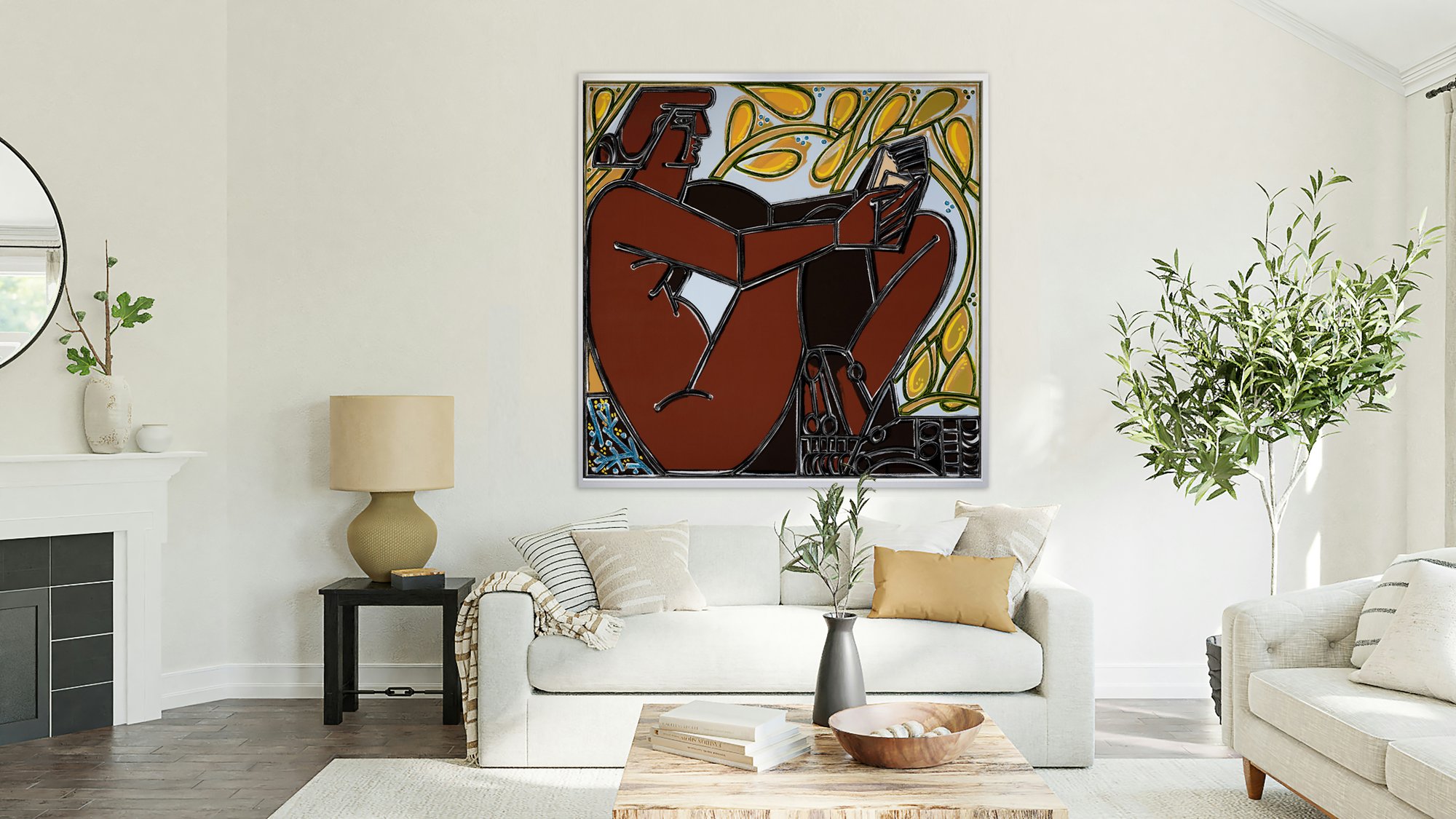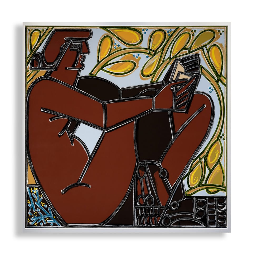 Focused on the human figure and the tales that emerge through the framework of shape, contour, and formal approach, Martin choreographs her forms in relentless flux. Her technique of freehandedly capturing her subjects yields unapologetic marks and a spirited palette that hums with the vitality and vigor of the world she creates. In addition to the figure, many of Martin’s works are populated with anthropomorphic elements such as birds, butterflies and flowers. For Martin, these elements provide both a contextual source of information, as well as symbolic significance, progressing the storyline as a representation of personality, mood, and character.