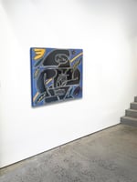Experimenting with line weight and function as a tool for two dimensional representation of three dimensional forms, Martin takes on a new balance between solidity, weight and suggestion. Laden with nuance, the thick lines are filled with the bubbling energy of thin, long scrapes throughout their length - adding both intensity and dimension.