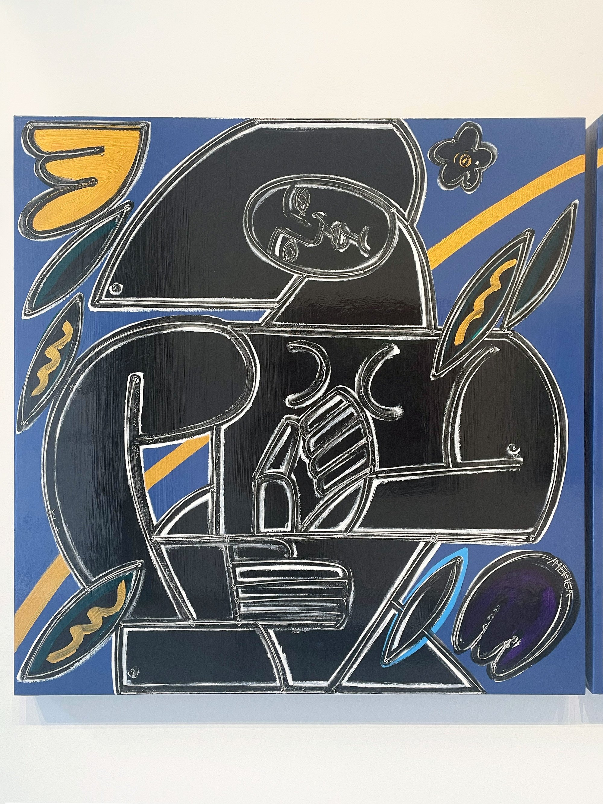 Focused on the human figure and the tales that emerge through the framework of shape, contour, and formal approach, Martin choreographs her forms in relentless flux. Her technique of freehandedly capturing her subjects yields unapologetic marks and a spirited palette that hums with the vitality and vigor of the world she creates. In addition to the figure, many of Martin’s works are populated with anthropomorphic elements such as birds, butterflies and flowers. For Martin, these elements provide both a contextual source of information, as well as symbolic significance, progressing the storyline as a representation of personality, mood, and character.