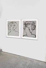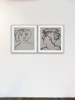 Experimenting with line weight and function as a tool for two dimensional representation of three dimensional forms, Martin takes on a new balance between solidity, weight and suggestion. Laden with nuance, the thick lines are filled with the bubbling energy of thin, long scrapes throughout their length - adding both intensity and dimension.