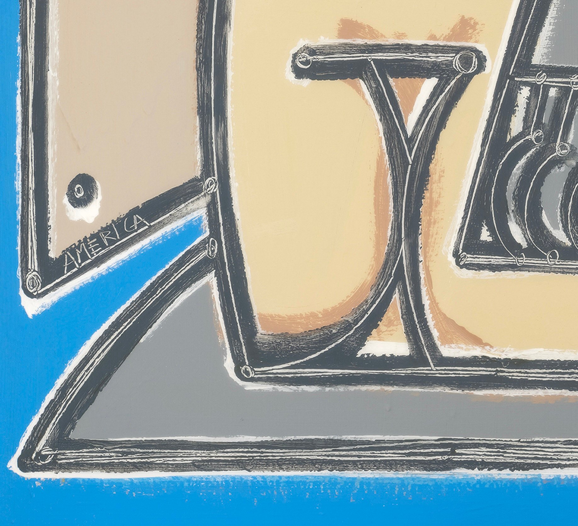 Experimenting with line weight and function as a tool for two dimensional representation of three dimensional forms, Martin takes on a new balance between solidity, weight and suggestion. Laden with nuance, the thick lines are filled with the bubbling energy of thin, long scrapes throughout their length - adding both intensity and dimension.