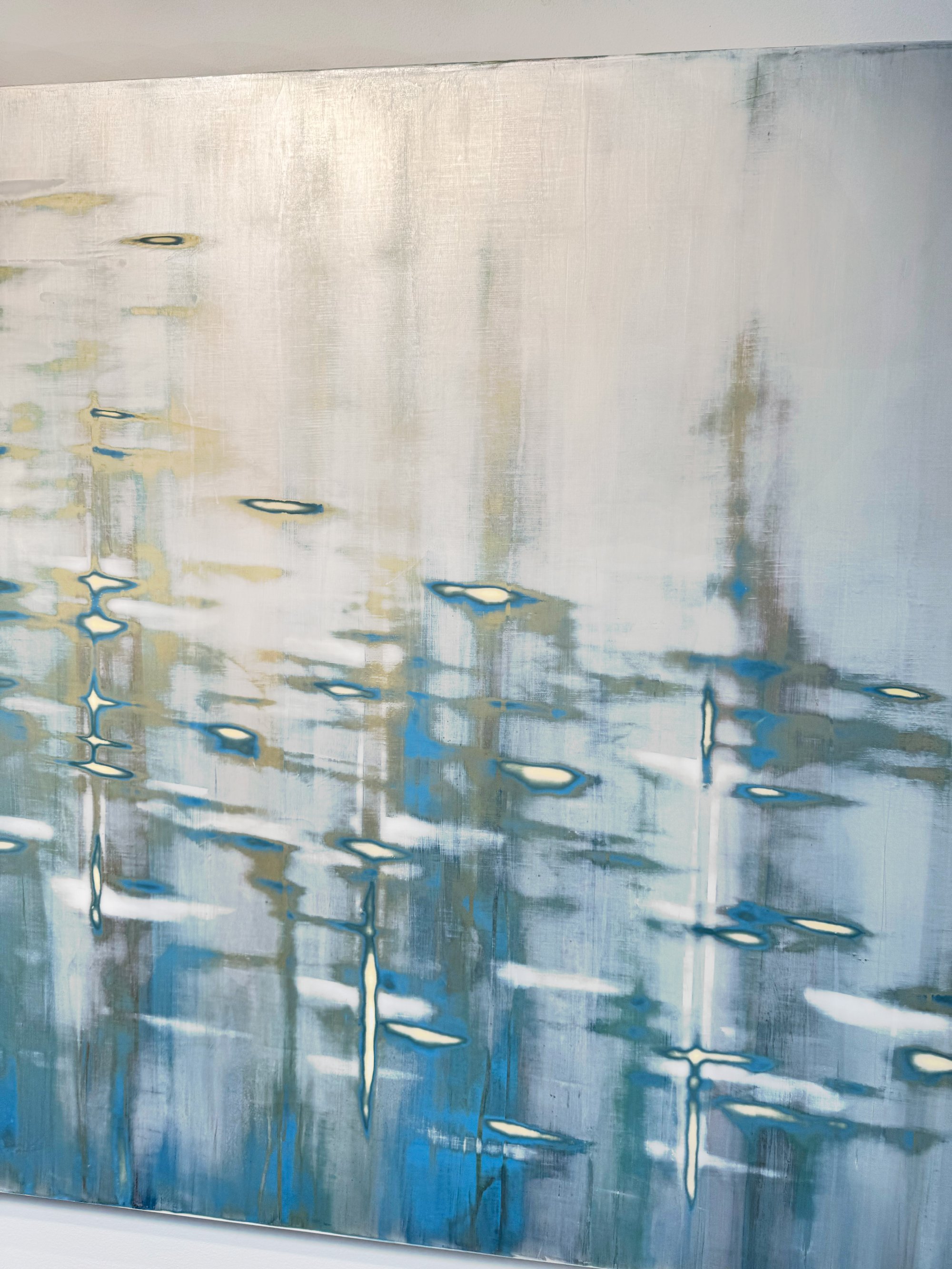 With a channeled devotion to landscapes, the ebb and flow of the environment is mimicked in Weaser’s process and surface quality. Intuitively placing large swathes of color, layers of paint are collaged into seamless undulations pierced by lighter areas, reminiscent of dappled sunlight. Selectively buffing away areas, she cuts through to the bottom layer in movements that echo the direction of her brushstrokes, revealing the final composition.