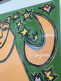 Focused on the human figure and the tales that emerge through the framework of shape, contour, and formal approach, Martin choreographs her forms in relentless flux. Her technique of freehandedly capturing her subjects yields unapologetic marks and a spirited palette that hums with the vitality and vigor of the world she creates. In addition to the figure, many of Martin’s works are populated with anthropomorphic elements such as birds, butterflies and flowers. For Martin, these elements provide both a contextual source of information, as well as symbolic significance, progressing the storyline as a representation of personality, mood, and character.