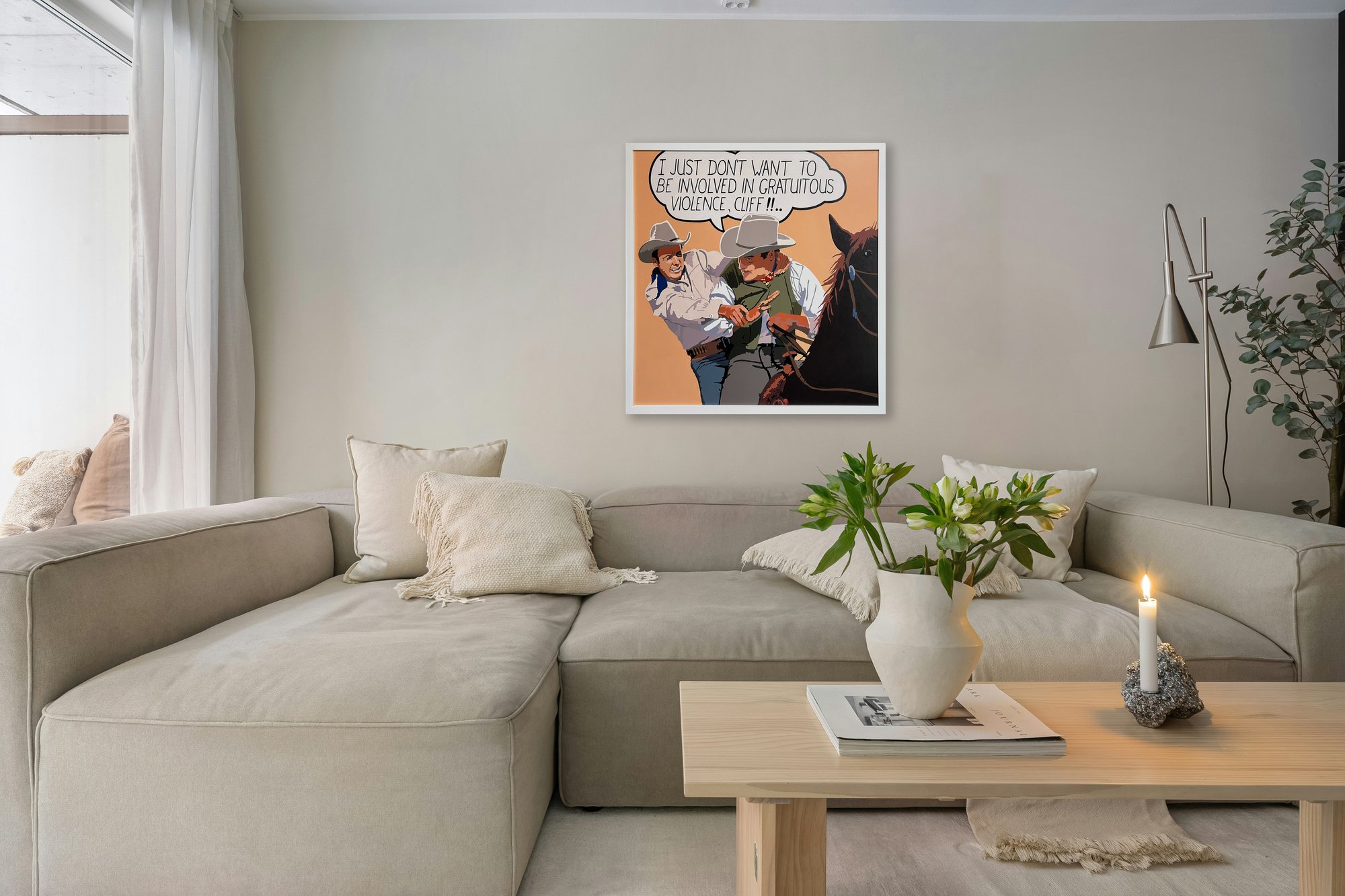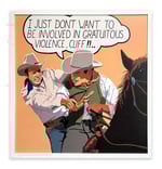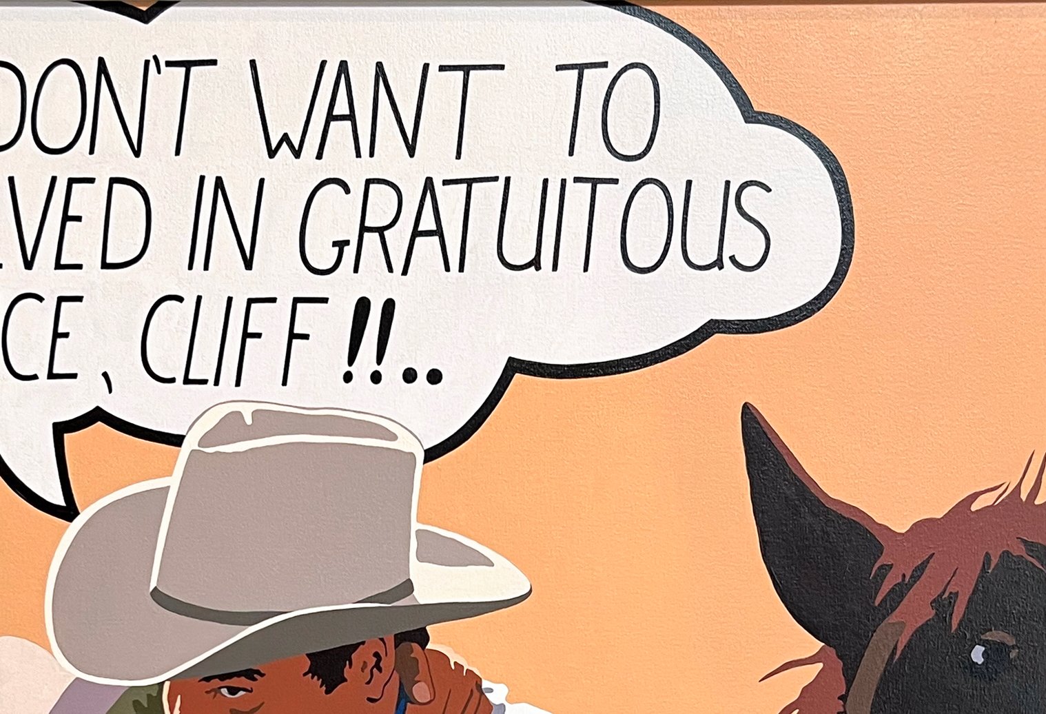 One of the originators of the Western pop art movement, Billy Schenck incorporates techniques from photorealism with a pop art sensibility to both exalt and poke fun at images of the West. Schenck is known for utilizing cinematic imagery reproduced in a flattened, reductive style, where colors are displayed side-by-side rather than blended or shadowed.