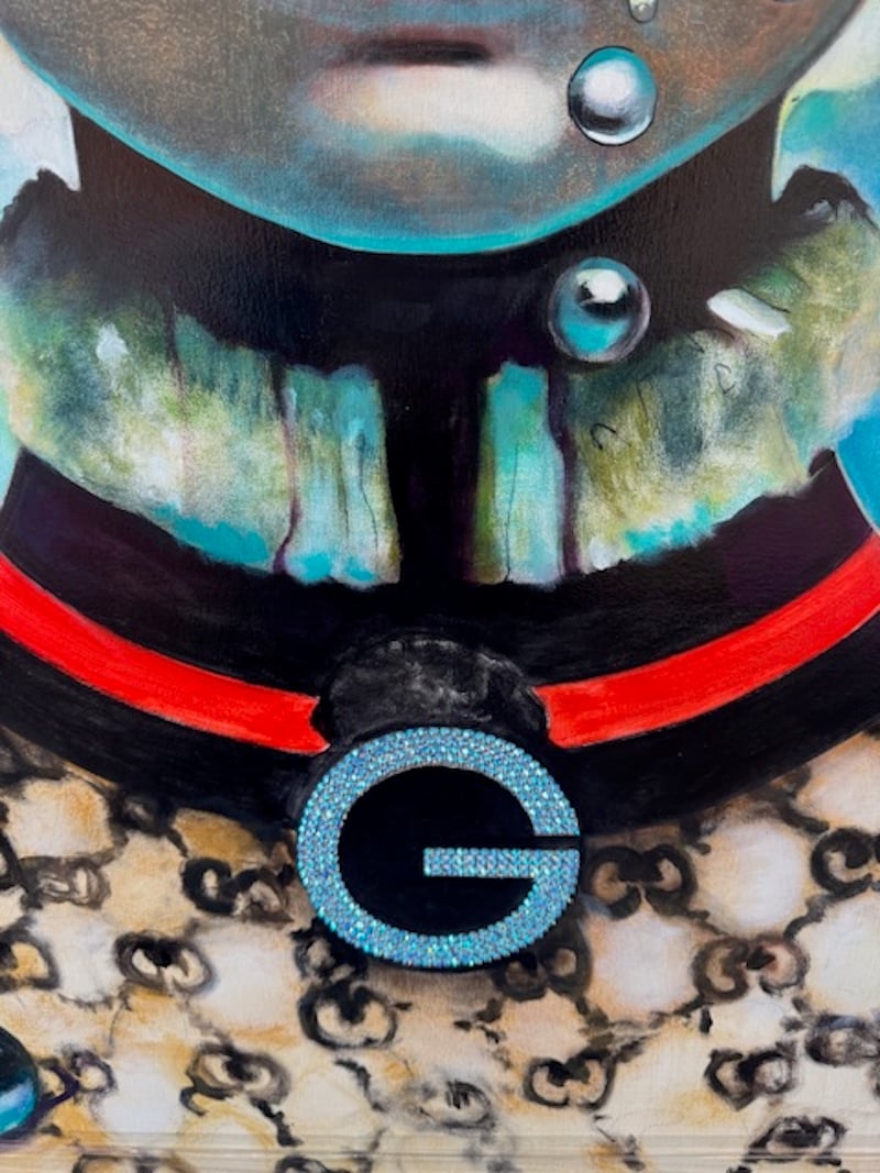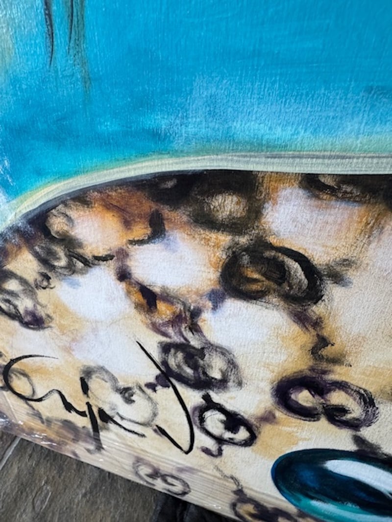 Acrylic with Swarovski Crystals on Wood