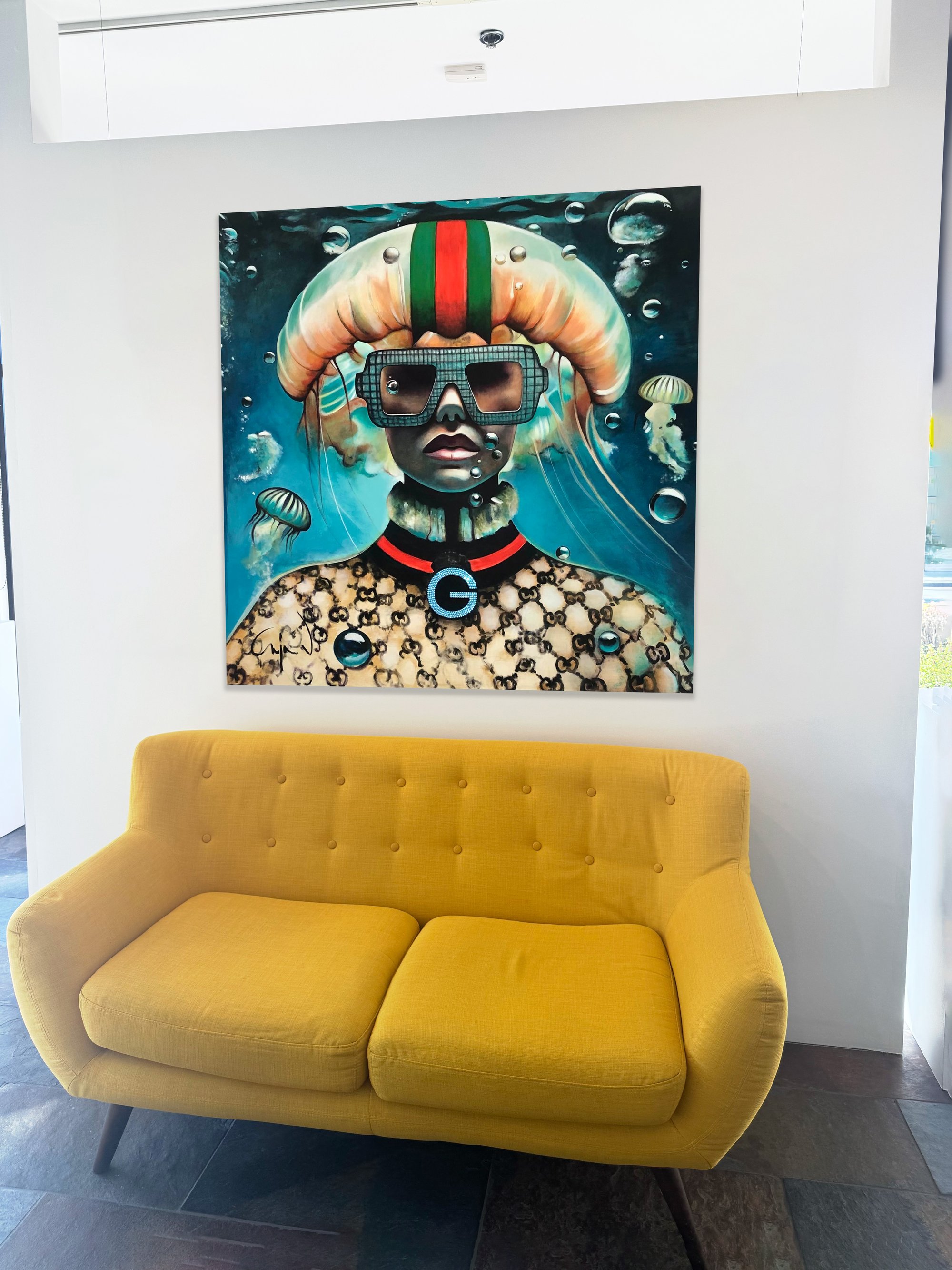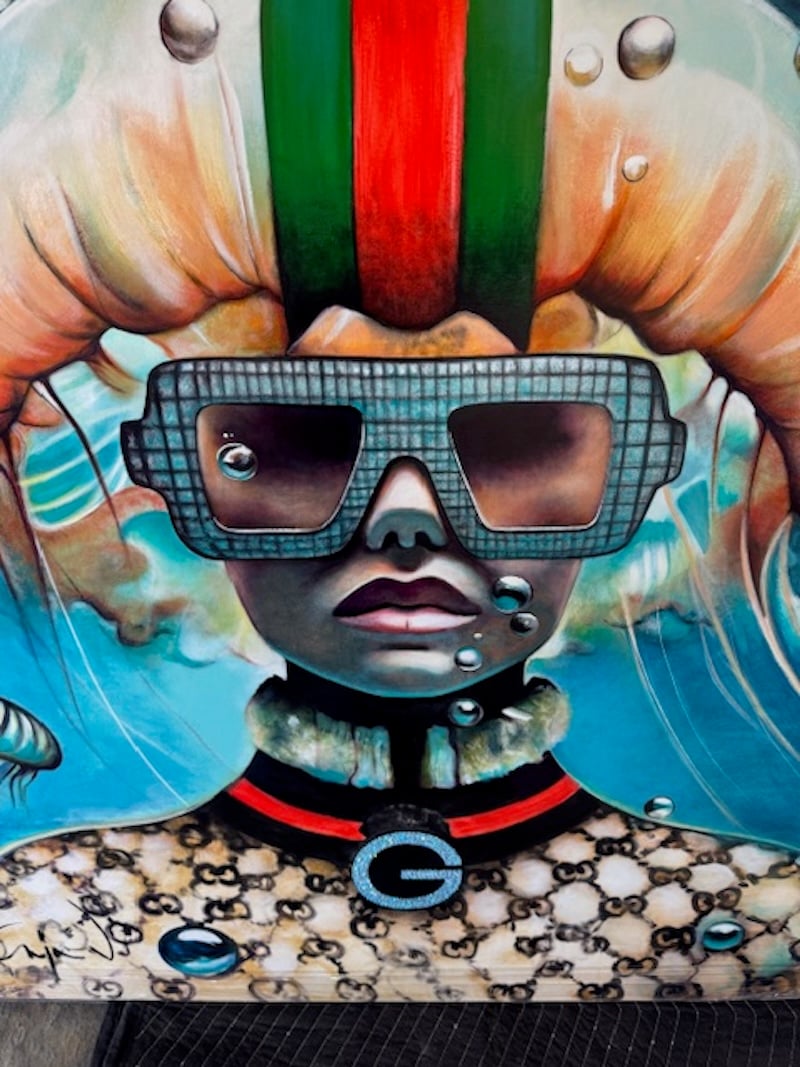 Born in Belgium in 1969, Anja Van Herle combines a European sense of high fashion in her artwork with an American sense of wonder. Her childhood years were devoted to exploring the fundamentals of her art using crayons, pencils and watercolors. In 1987, she enrolled in Belgium’s Higher Institute for Art Education where she earned a Master’s of Fine Arts in Painting. Anja now concentrates on figurative paintings that are inspired by both classic and contemporary fashion while exploring issues of identity, emotion and human interrelationships. As timelessly chic as Audrey Hepburn in Breakfast at Tiffany’s, Anja’s women are playfully sexy, and their expressions and eyes tell stories that go far beyond the simple exhibition of fine fashion. In Anja’s masterful hands, fashion becomes alive. “These women—they feel.”