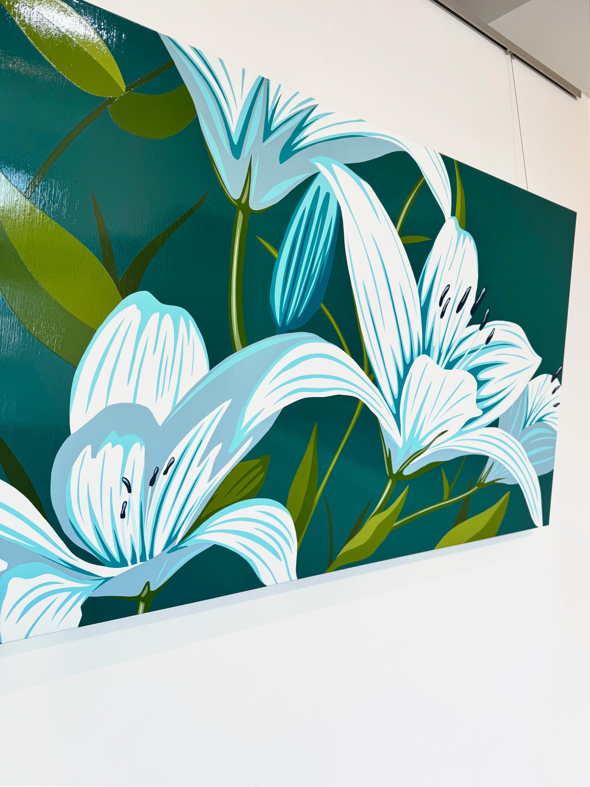 James Wolanin’s paintings transport the viewer to an effervescent, candy-coated world inspired by vintage advertisements, photographs, and the artist’s own personal history. The Russian Avant Garde, Cubism, Graffiti and Pop Art are all influences that can be found in the artists’ work. Identifying with Pop artists like Andy Warhol and James Rosenquist, Wolanin taps into our culture’s collective visual conscious, creating vibrant, stylized reflections of American life. Sunny skies, bright smiles, and carefree Sunday drives characterize the artist’s utopic vision, which blends a nostalgia for mid-century America with a contemporary aesthetic. He notes, “I try to bring the viewer back to a simpler time, a time of innocence.”
