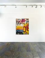 Drawing from the diverse cultural and geographic makeup of his Californian roots, Greg Miller explores his relationship with the space he inhabits to communicate a particular urban experience. Working with both paint and collage, he constructs and deconstructs exploring the contradiction, ambiguity, and truth between urban streetscape and history. Miller’s art is clever and cool. His abstracted backgrounds of drips, patterns, and phrases and the peeling back of layers provide a study in the impermanence of the things that surround us.