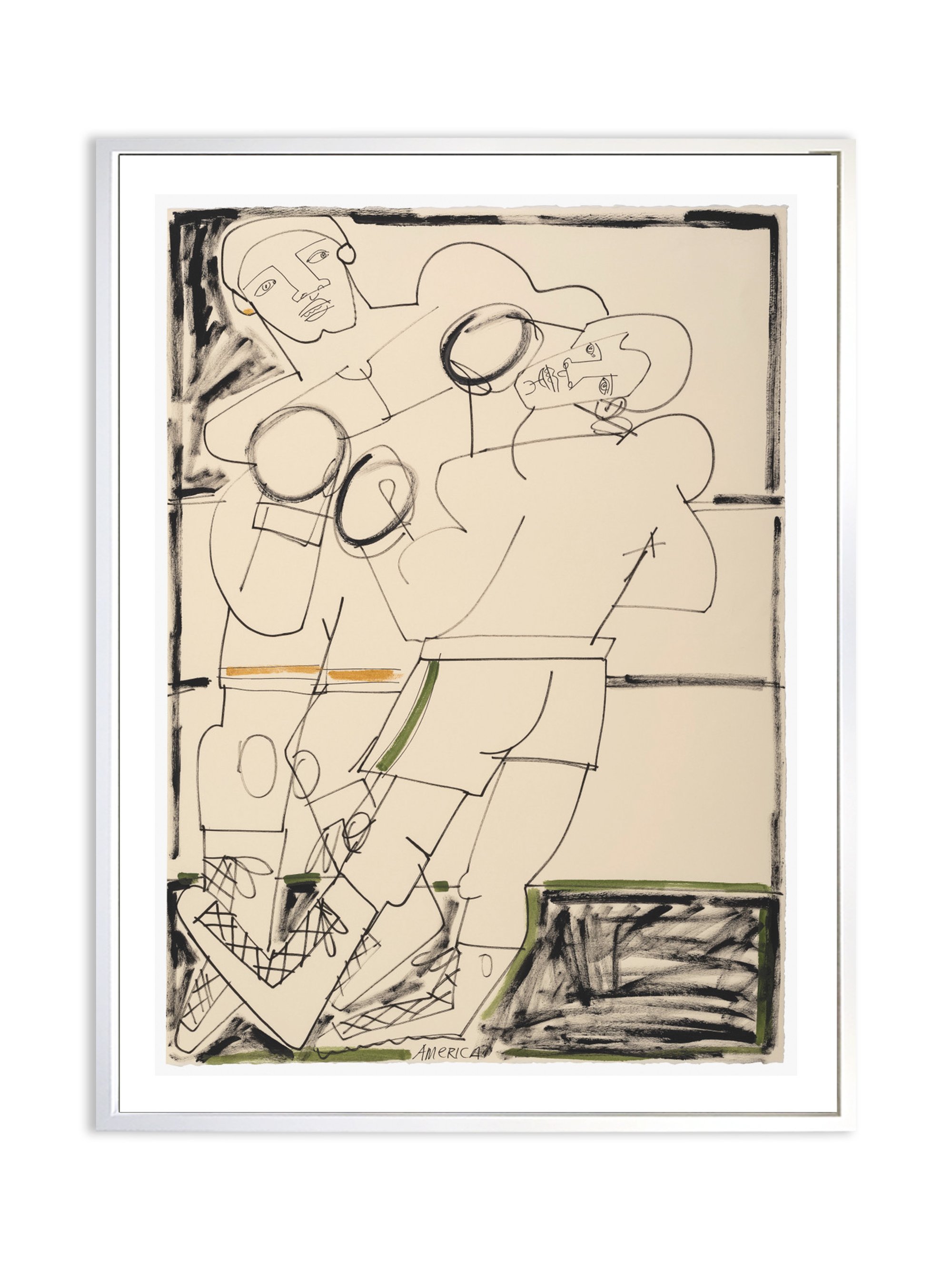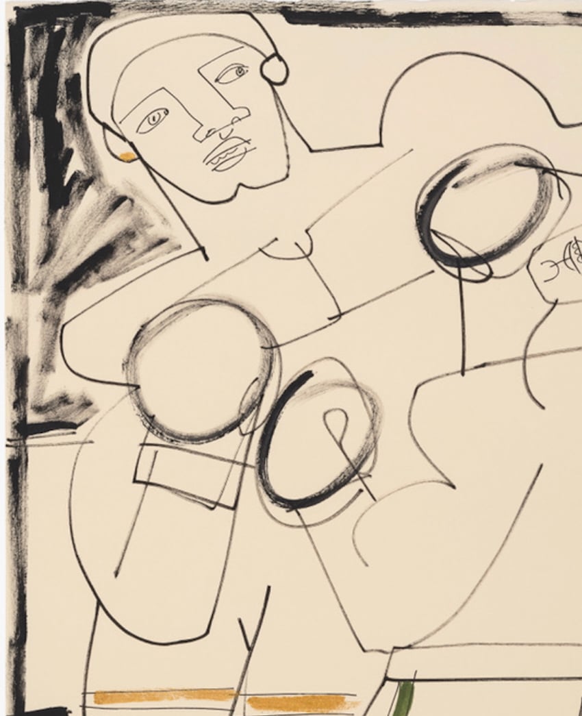 Focused on the human figure and the tales that emerge through the framework of shape, contour, and formal approach, Martin choreographs her forms in relentless flux. Her technique of freehandedly capturing her subjects yields unapologetic marks and a spirited palette that hums with the vitality and vigor of the world she creates. In addition to the figure, many of Martin’s works are populated with anthropomorphic elements such as birds, butterflies and flowers. For Martin, these elements provide both a contextual source of information, as well as symbolic significance, progressing the storyline as a representation of personality, mood, and character.