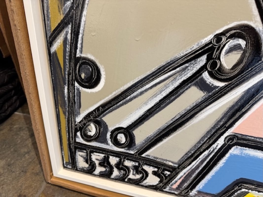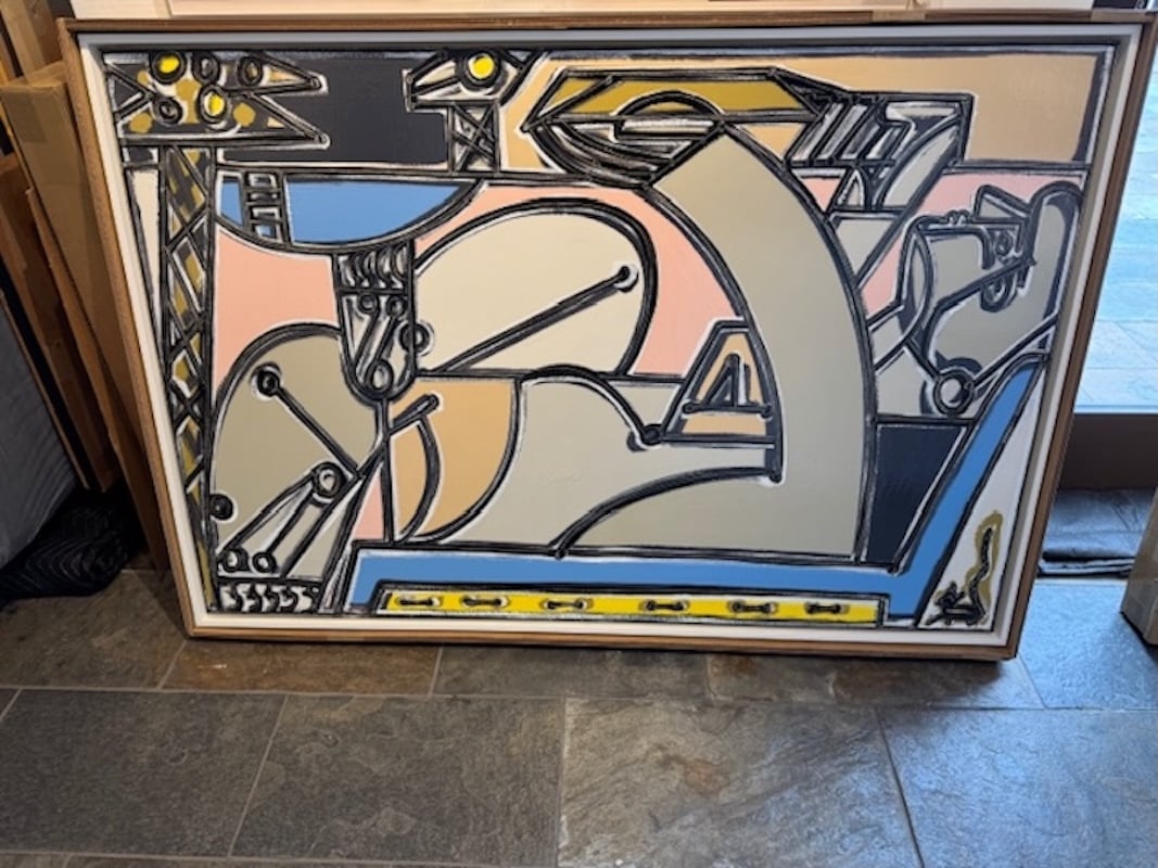 Experimenting with line weight and function as a tool for two dimensional representation of three dimensional forms, Martin takes on a new balance between solidity, weight and suggestion. Laden with nuance, the thick lines are filled with the bubbling energy of thin, long scrapes throughout their length - adding both intensity and dimension.