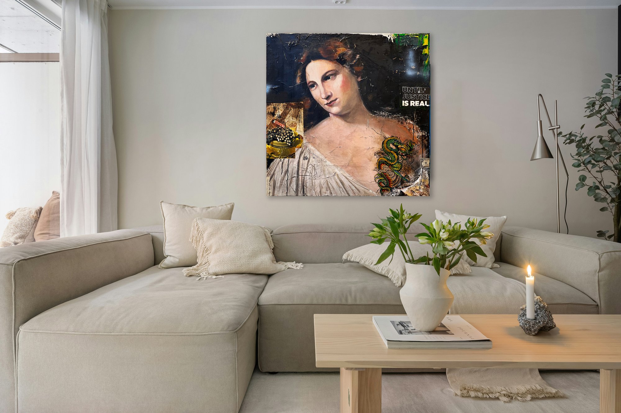 Drawing from the diverse cultural and geographic makeup of his Californian roots, Greg Miller explores his relationship with the space he inhabits to communicate a particular urban experience. Working with both paint and collage, he constructs and deconstructs exploring the contradiction, ambiguity, and truth between urban streetscape and history. Miller’s art is clever and cool. His abstracted backgrounds of drips, patterns, and phrases and the peeling back of layers provide a study in the impermanence of the things that surround us.