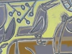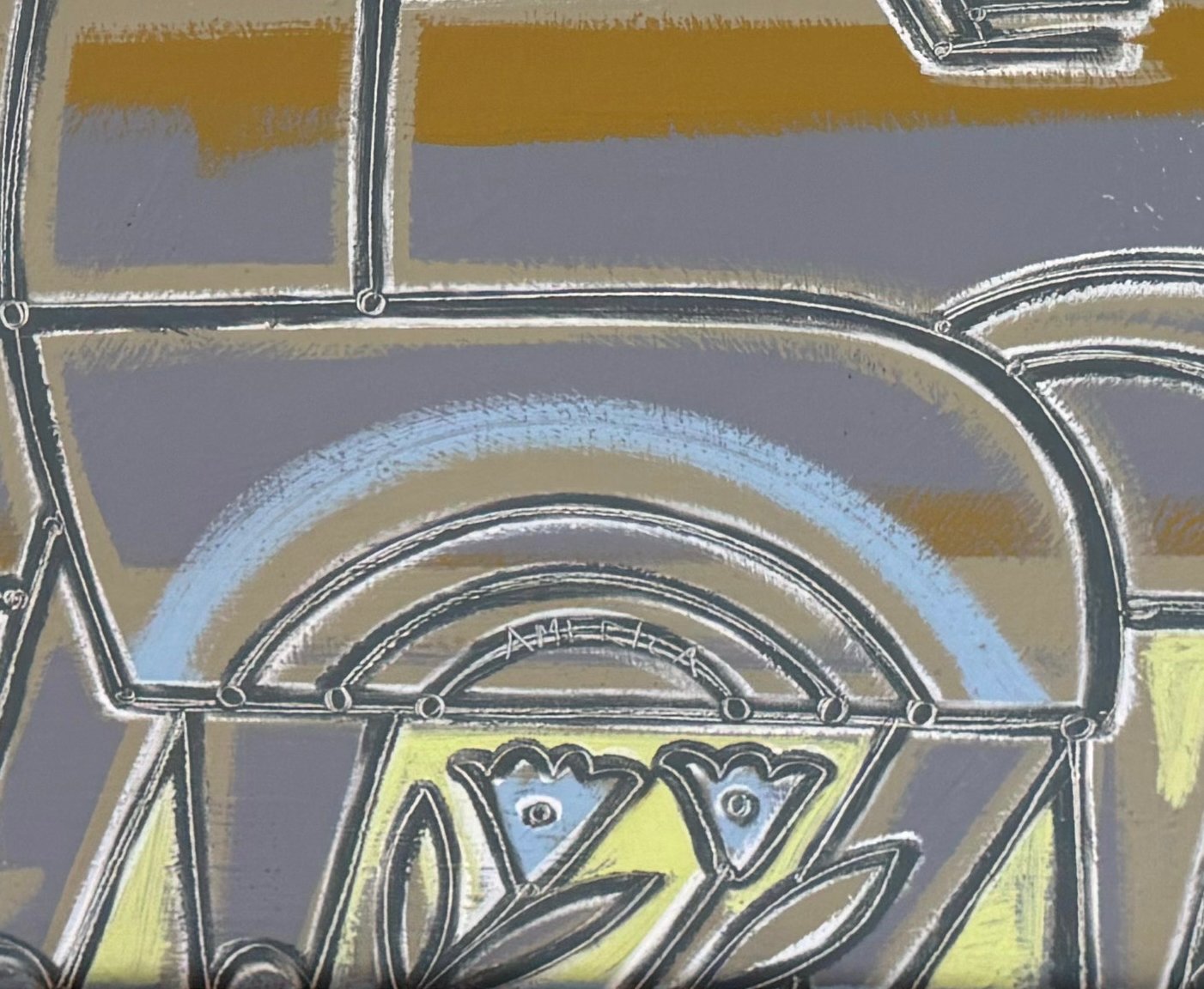 Focused on the human figure and the tales that emerge through the framework of shape, contour, and formal approach, Martin choreographs her forms in relentless flux. Her technique of freehandedly capturing her subjects yields unapologetic marks and a spirited palette that hums with the vitality and vigor of the world she creates. In addition to the figure, many of Martin’s works are populated with anthropomorphic elements such as birds, butterflies and flowers. For Martin, these elements provide both a contextual source of information, as well as symbolic significance, progressing the storyline as a representation of personality, mood, and character.