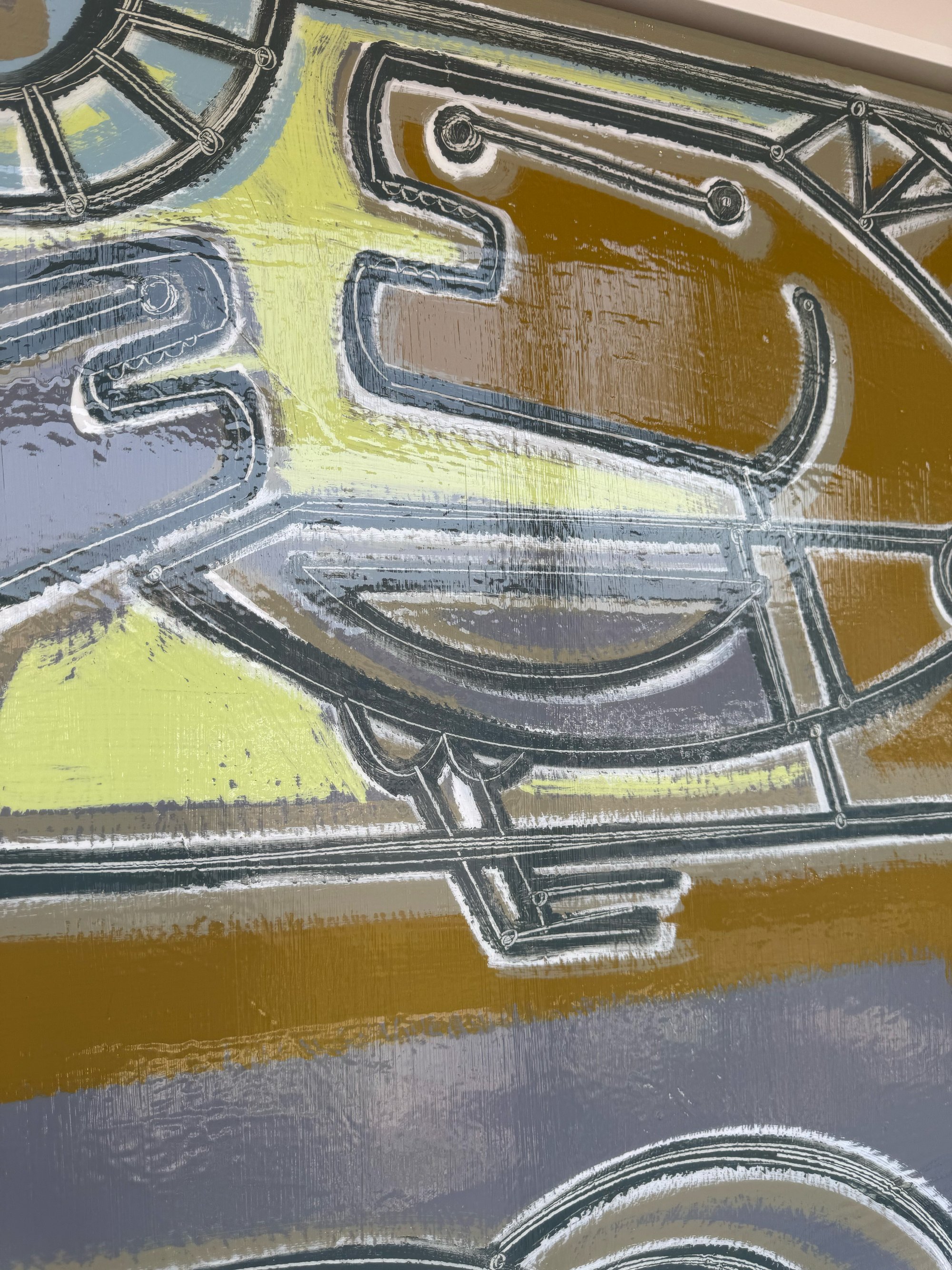 Experimenting with line weight and function as a tool for two dimensional representation of three dimensional forms, Martin takes on a new balance between solidity, weight and suggestion. Laden with nuance, the thick lines are filled with the bubbling energy of thin, long scrapes throughout their length - adding both intensity and dimension.