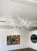 The contrasts of nature and industry, light and shadow, chaos and order are themes found throughout Devine’s body of work. Pared-down organic shapes are formed out of sheet and solid materials and welded together in harmonious accord, often allowing the metal to appear as light as paper. These contrasts, plus the relationships of patterns and boundaries, address Devine’s desire to contain chaos and push out the discord of an information-saturated culture.