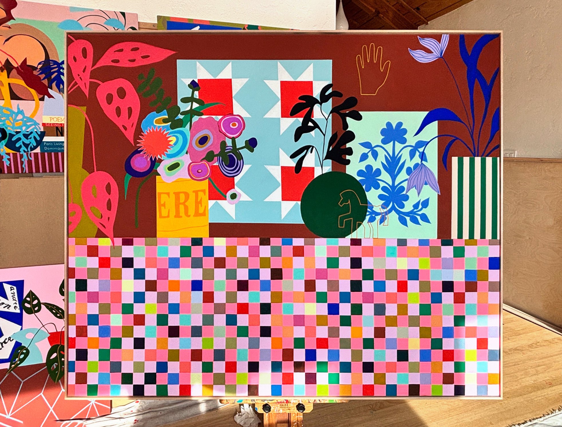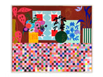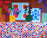 Mary Finlayson’s paintings are a celebration of color, pattern and form which navigate themes of home, memory, and self. Flattening the perspective of each scene, her works provide an intimate glimpse into each curated space. Her interiors pay homage to the iconic works of David Hockney, Henri Matisse, and Stuart Davis by borrowing similar bright color palettes, repetitive patterns and forms simplified, yet still creating complex, tightly constructed compositions unique to her own style.
