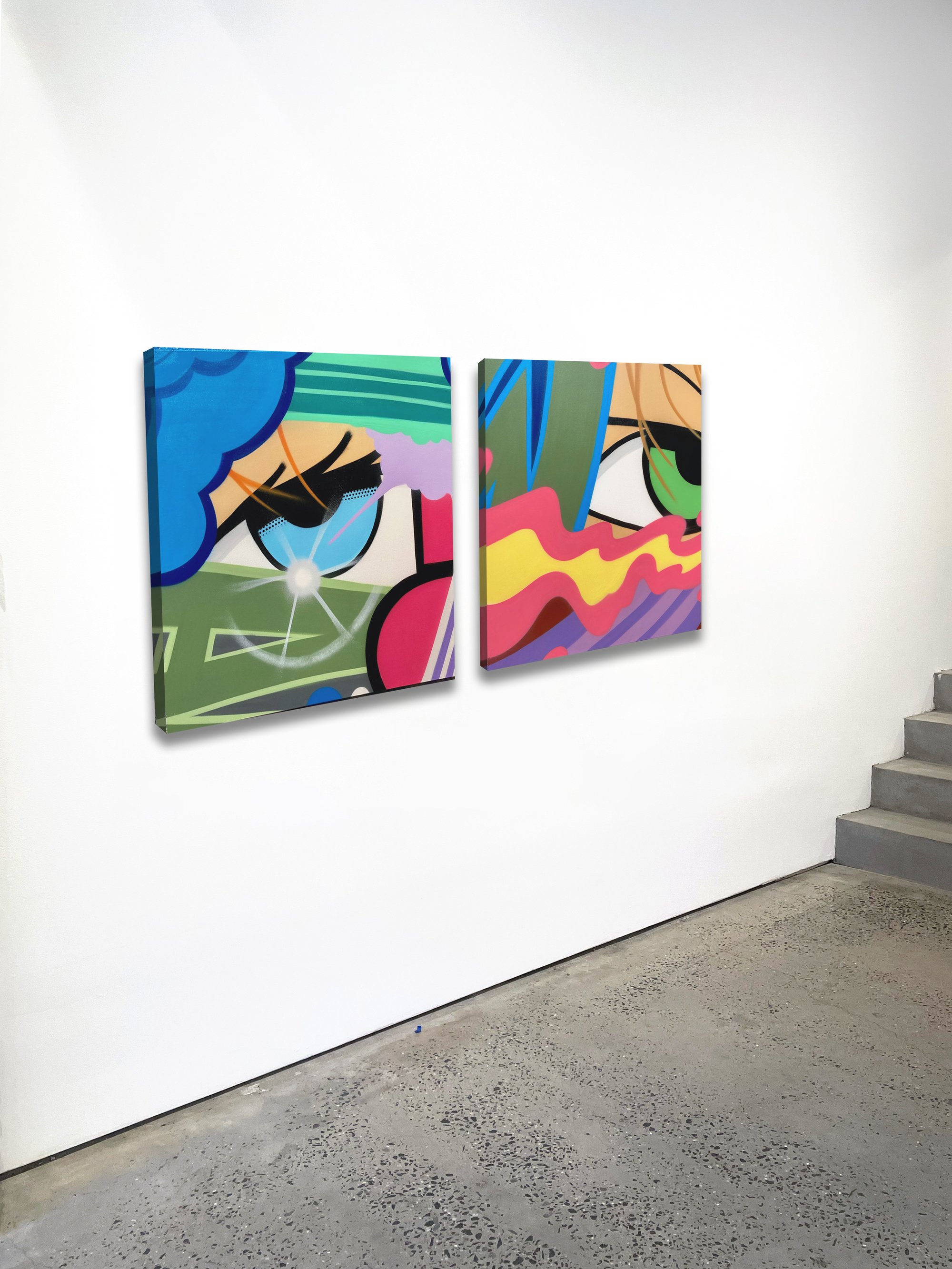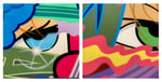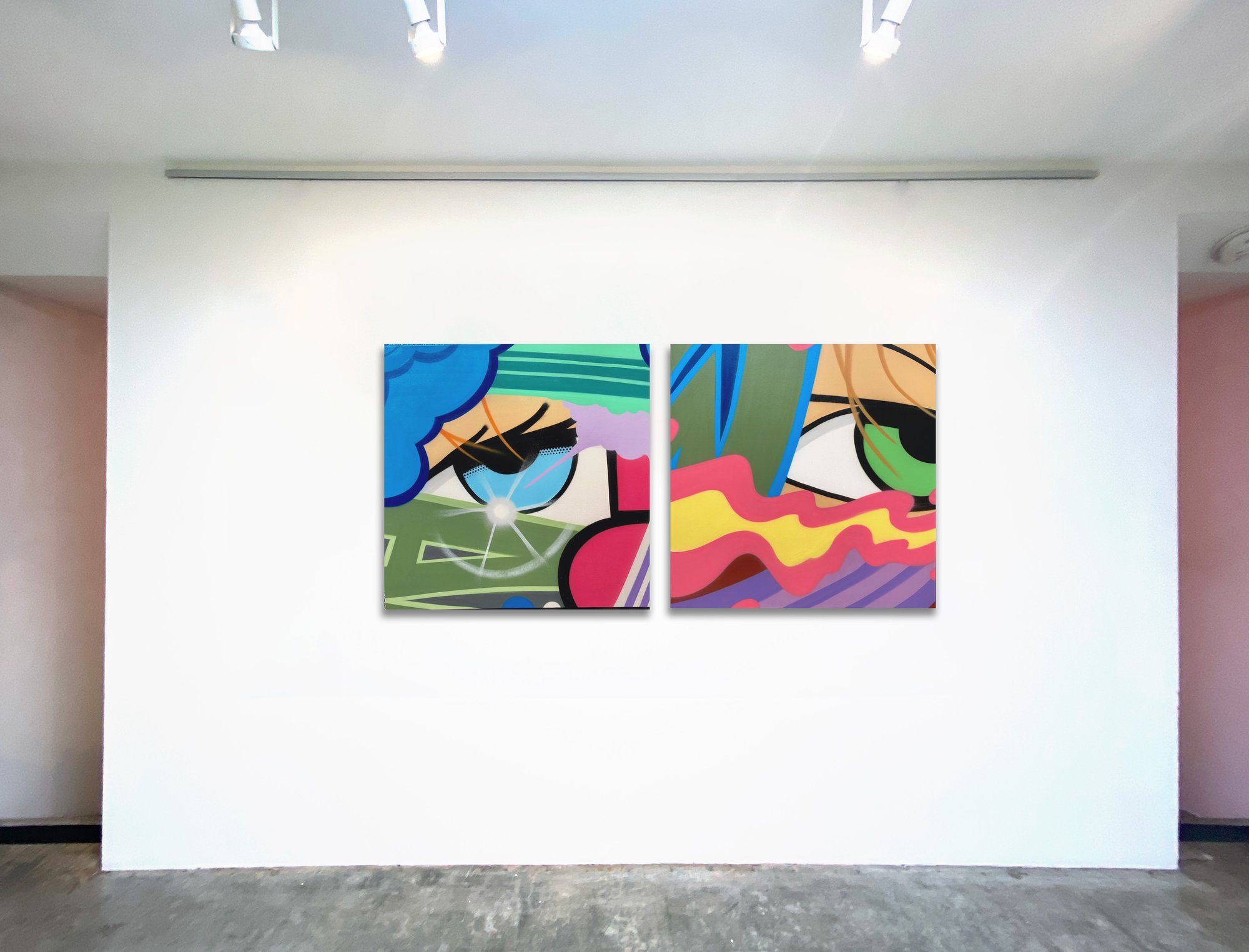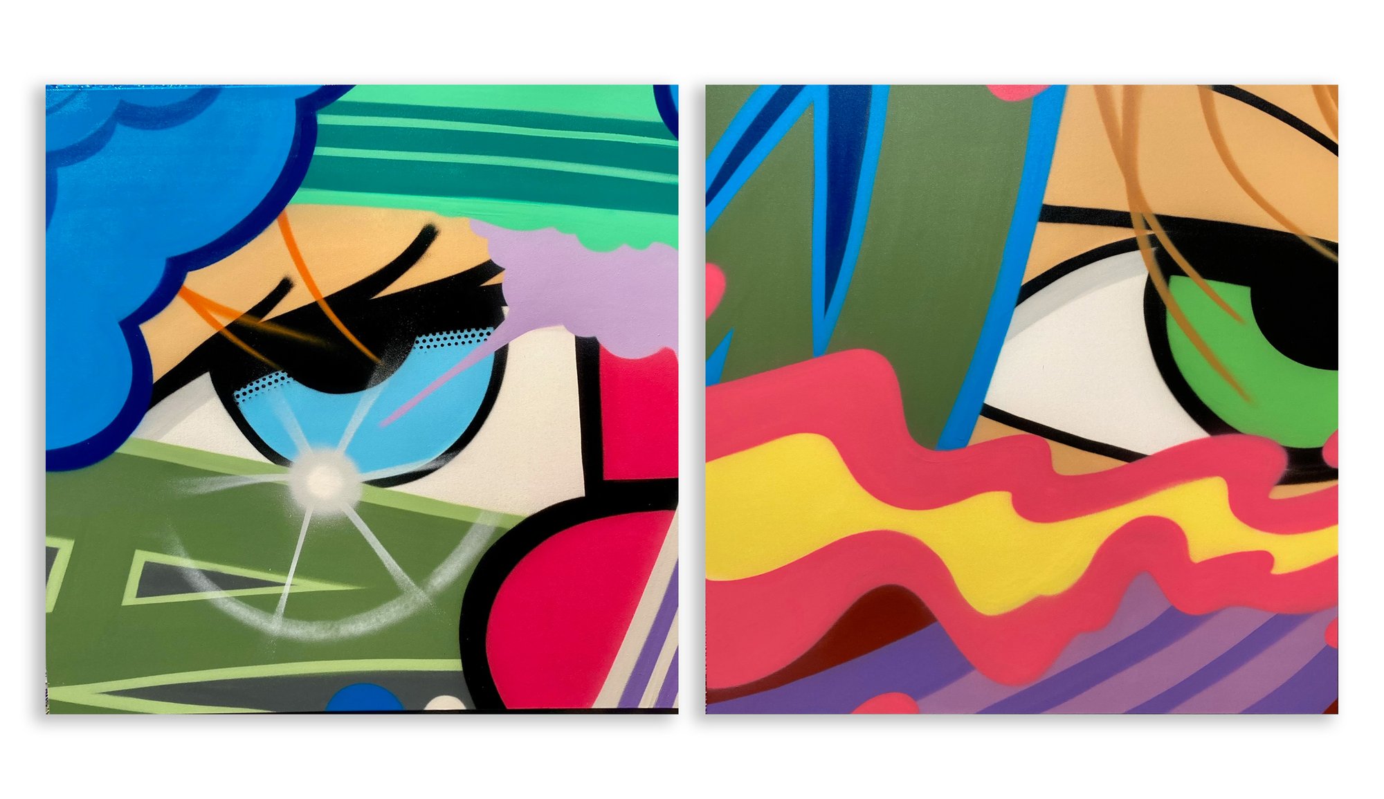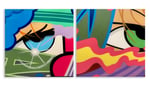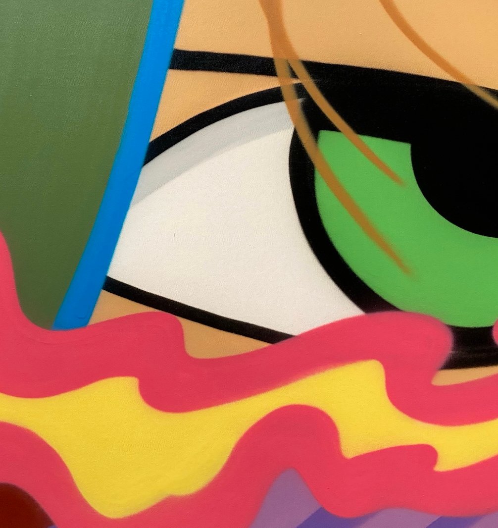 CRASH’s radiant, fluorescent palette cements his work firmly in the present as the artist works within a dialogue culled from classic pop culture, comic book and print references. A frequent collaborator, CRASH’s process is rooted within his identity as a Bronx-born graffiti artist, having come of age in the hip-hop fueled Bronx of the late 1970s. His distinct style made him an iconic part of the NYC visual landscape, while also pioneering a new age for graffiti in 1980 when he curated the pivotal “Graffiti Art Success for America” exhibition at Fashion MODA. In his new work he widens the scope in a gestural exploration of form and shape, with a continuously unfolding narrative that plays out over each surface, barely contained to the planes of the canvas.