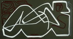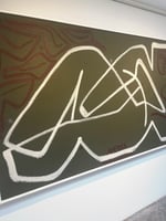 Experimenting with line weight and function as a tool for two dimensional representation of three dimensional forms, Martin takes on a new balance between solidity, weight and suggestion. Laden with nuance, the thick lines are filled with the bubbling energy of thin, long scrapes throughout their length - adding both intensity and dimension.