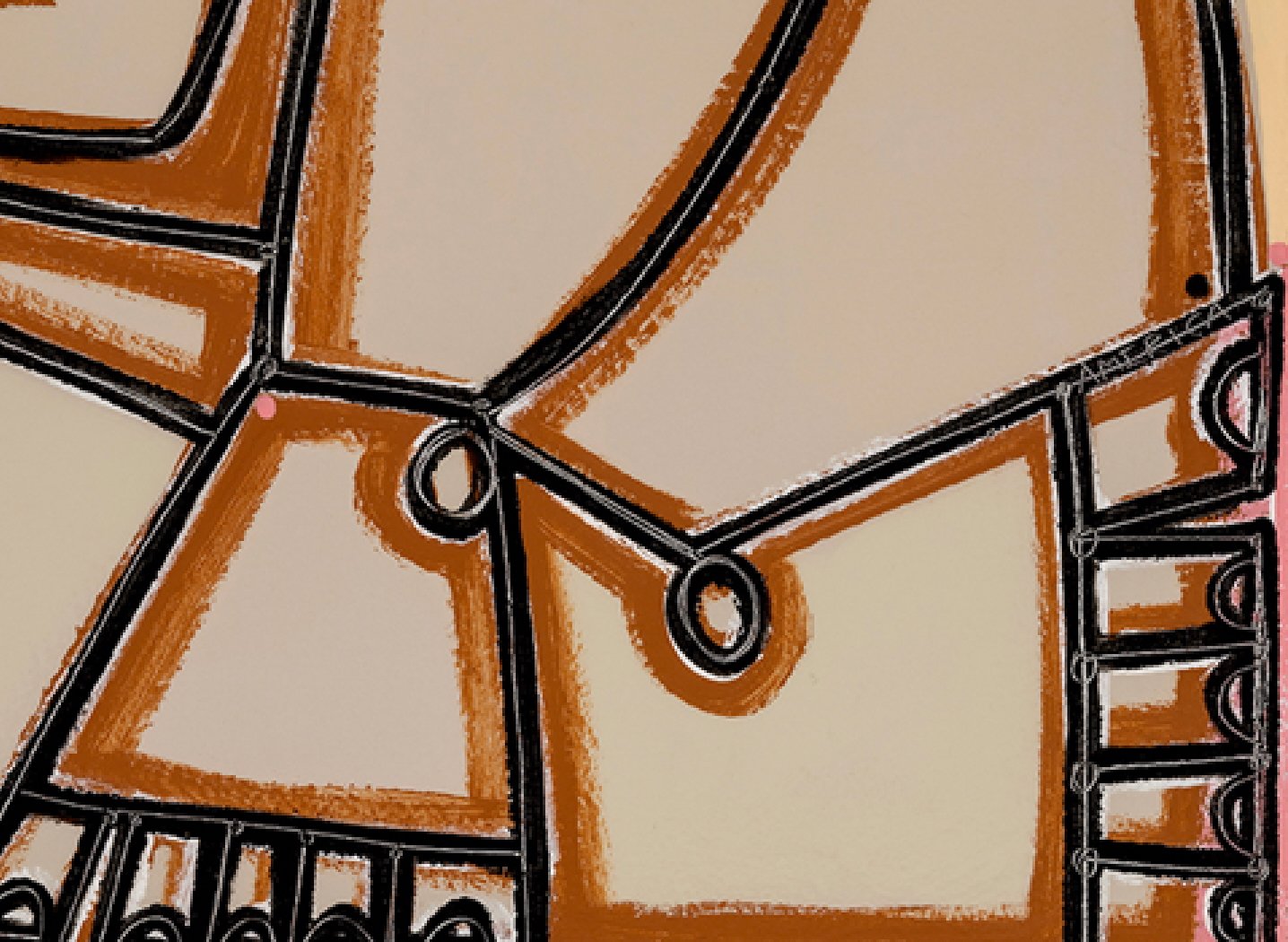 Experimenting with line weight and function as a tool for two dimensional representation of three dimensional forms, Martin takes on a new balance between solidity, weight and suggestion. Laden with nuance, the thick lines are filled with the bubbling energy of thin, long scrapes throughout their length - adding both intensity and dimension.
