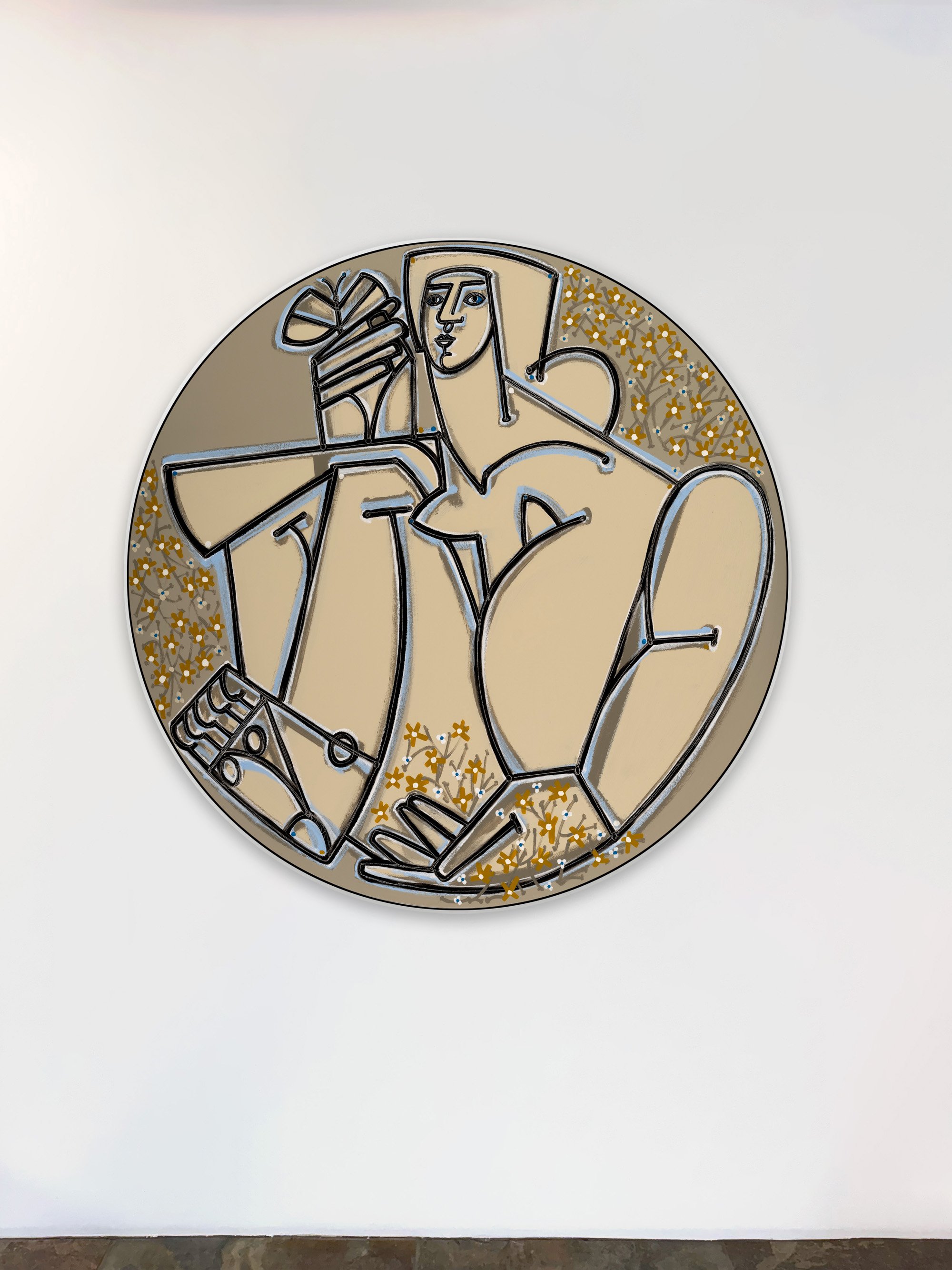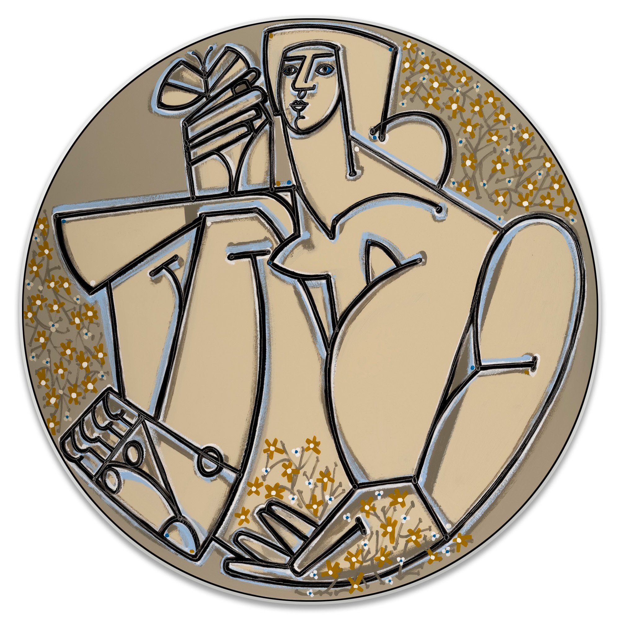 Focused on the human figure and the tales that emerge through the framework of shape, contour, and formal approach, Martin choreographs her forms in relentless flux. Her technique of freehandedly capturing her subjects yields unapologetic marks and a spirited palette that hums with the vitality and vigor of the world she creates. In addition to the figure, many of Martin’s works are populated with anthropomorphic elements such as birds, butterflies and flowers. For Martin, these elements provide both a contextual source of information, as well as symbolic significance, progressing the storyline as a representation of personality, mood, and character.
